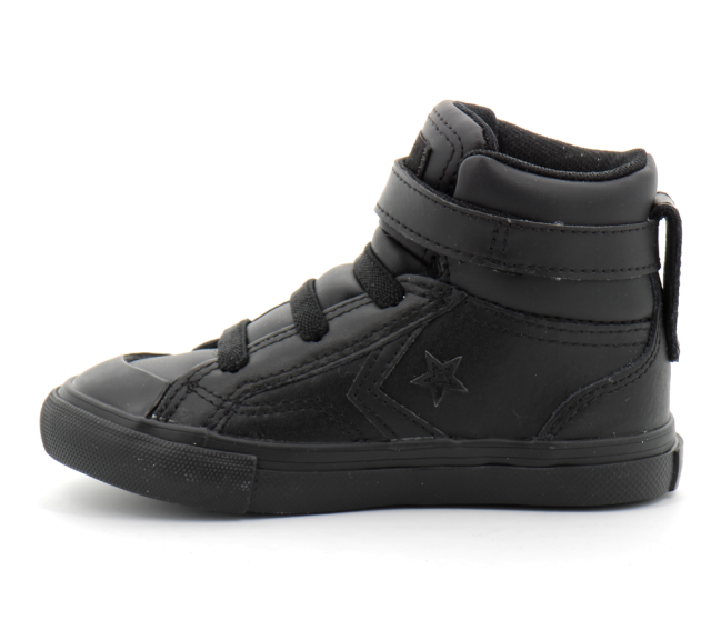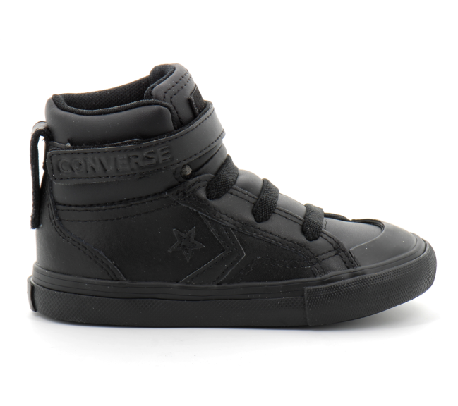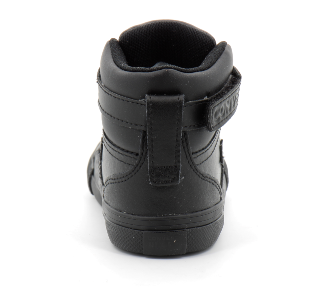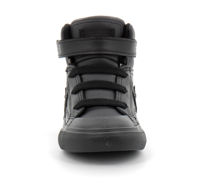 Basket Converse en cuir pour enfant Modèle Pro Blaze Strap : Sneakers montante Étiquette sur la languette et logo sur le talon Chaussure avec lacet élastiques et lanière à scratch à la cheville Renfort en caoutchouc avec liseré Détails contrastants en cuir