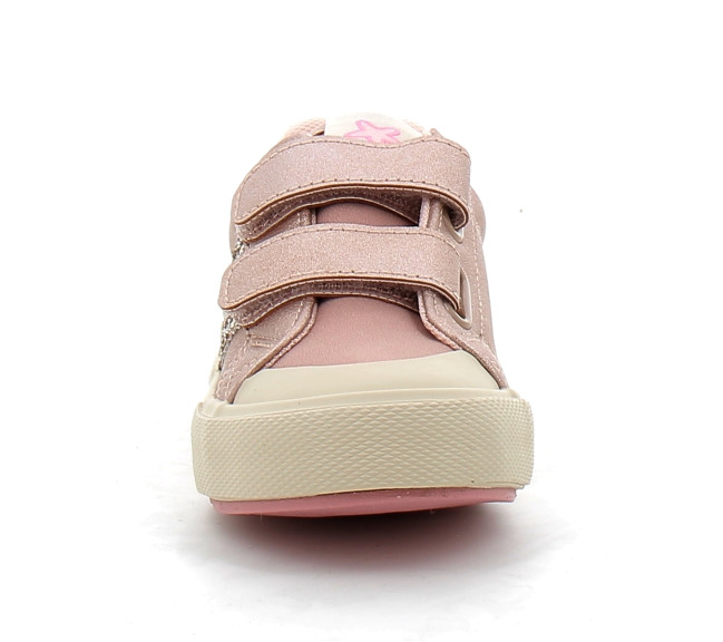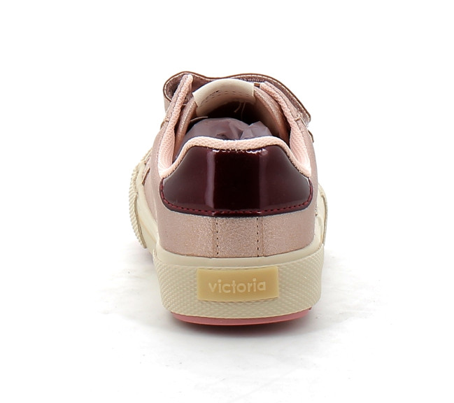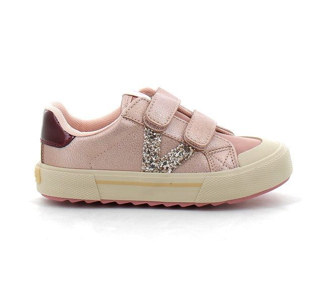 Baskets basses pour filles en matière effet cuir . Logo victoria latéral en glitter. Fermeture par deux bandes auto-agrippantes qui facilitent l'enfilage et favorisent leur autonomie. Semelle crantée en caoutchouc avec renfort au niveau du bout pour une meilleure résistance et durabilité.