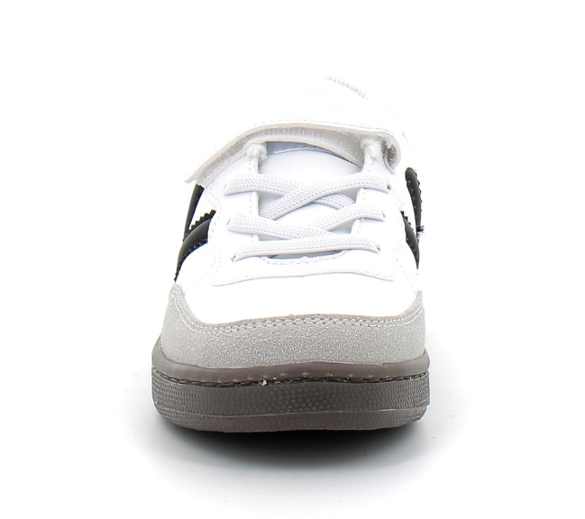 Baskets pour enfants OSLO, fabriquées en matériau effet cuir avec des détails en daim pour un style durable et moderne. Fermeture par lacets élastiques et une bande adhésive pour un ajustement confortable et facile à enfiler. La semelle en chocolat brun ajoute une touche unique, complétant le design jeune et polyvalent de ces baskets.