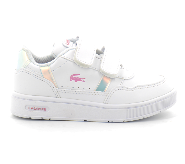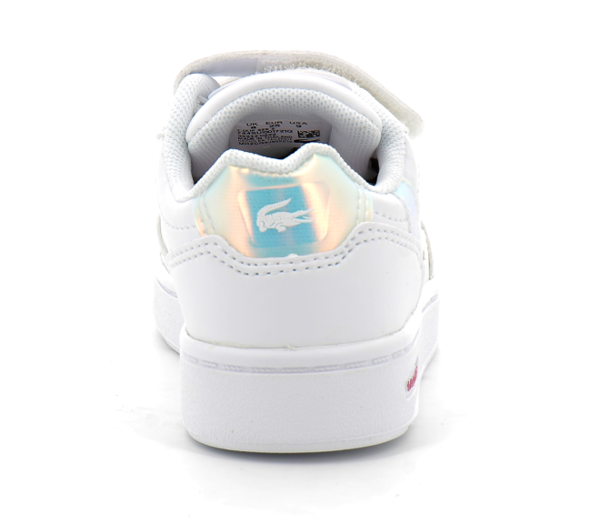 T-Clip reprend la coupe intemporelle de l’ancien modèle Sideline pour en faire une adaptation audacieuse inspirée des années 80. La tige en cuir synthétique est rehaussée d'éléments contrastants sur le talon et de détails tels que les doubles anneaux en D qui permettent une fermeture sûre des chaussures. Sur le quartier, les bandes font une référence directe aux angles du court, tandis qu’elles encadrent les perforations signature de la marque et le crocodile vert brodé.