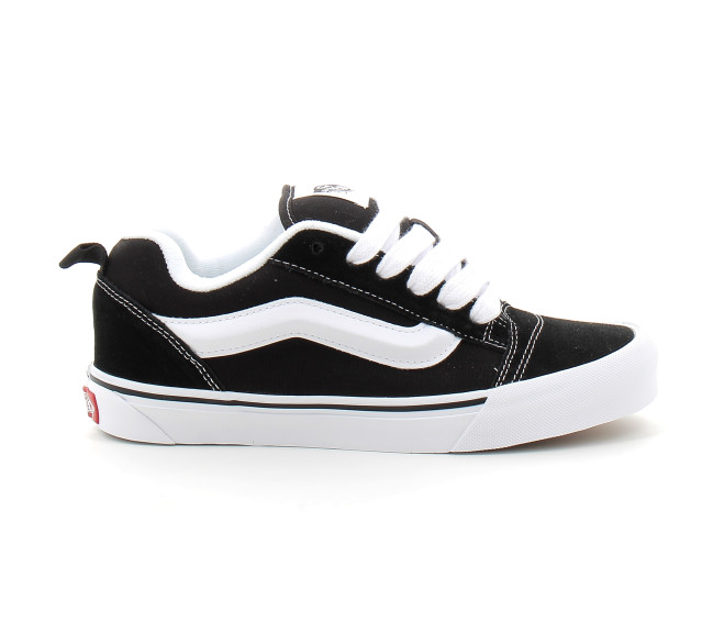 Les Knu Skool sont une interprétation moderne d'un classique des années 90 et se distinguent par leur languette rembourrée, une Sidestripe moulée en 3D et des lacets épais surdimensionnés. Les Knu Skool pour ado s'émancipent des Old Skool originales, véritables icônes classiques, avec des tendances actuelles, une silhouette tapageuse et des finitions XXL.