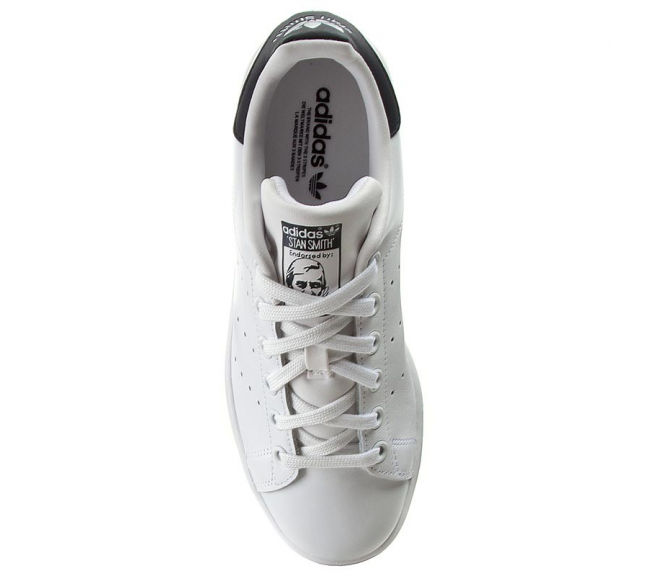Chaussure Stan Smith Dans le panthéon des baskets emblématiques, la Stan Smith occupe une place de choix. Première chaussure de tennis tout en cuir, la Stan Smith fait son apparition sur les courts en 1972. Elle remporte un vif succès même en dehors des cours, grâce à son look épuré et à la sobriété de ses détails. Rappelant le style décontracté de son prédécesseur légendaire, cette chaussure hommes possède une tige en cuir pleine fleur, une doublure en cuir souple, une touche de couleur sur le contrefort ainsi que trois bandes perforées emblématiques sur les côtés. Tige en cuir pleine fleur. Doublure en cuir de qualité supérieure. 3 bandes perforées. Contrefort contrasté Semelle Cupsole en caoutchouc.