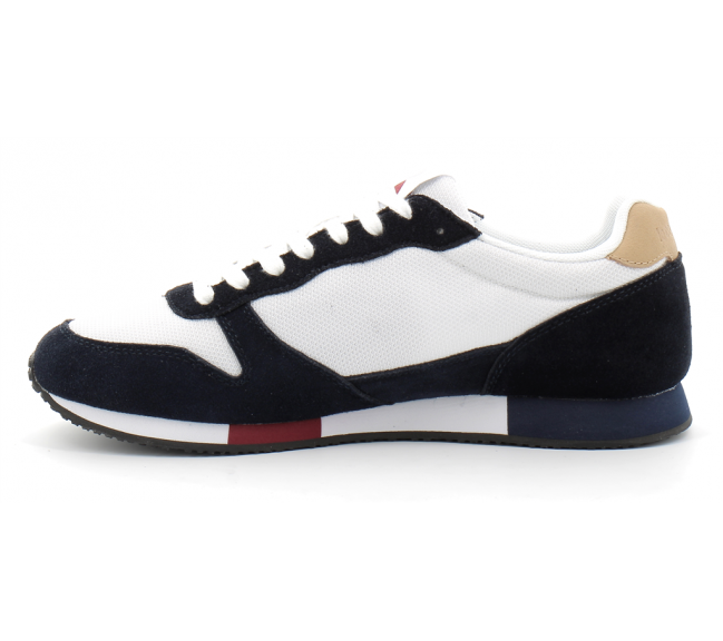 • Basket tendance en denim avec empiècements en cuir retourné véritable • Patch Le Coq Sportif sur la languette • Broderie Le Coq Sportif latérale • Renfort au talon