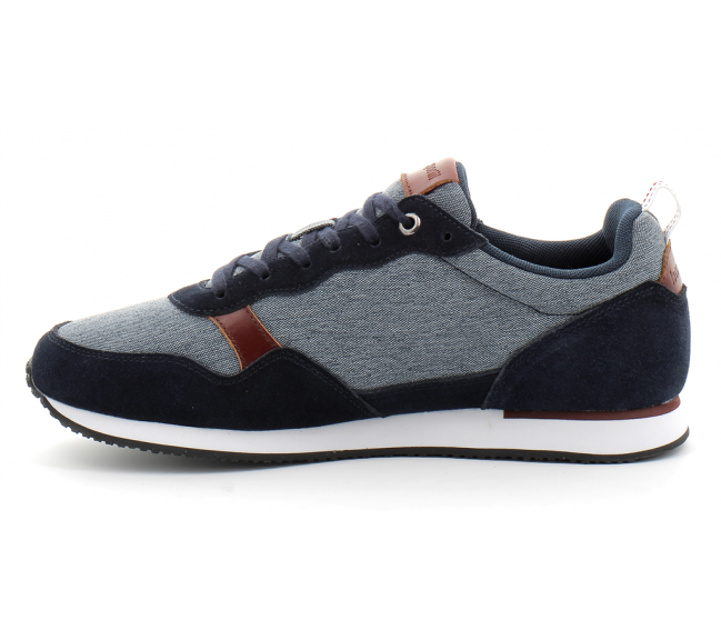 • Basket tendance en denim avec empiècements en cuir retourné véritable • Patch Le Coq Sportif sur la languette • Broderie Le Coq Sportif latérale • Renfort au talon