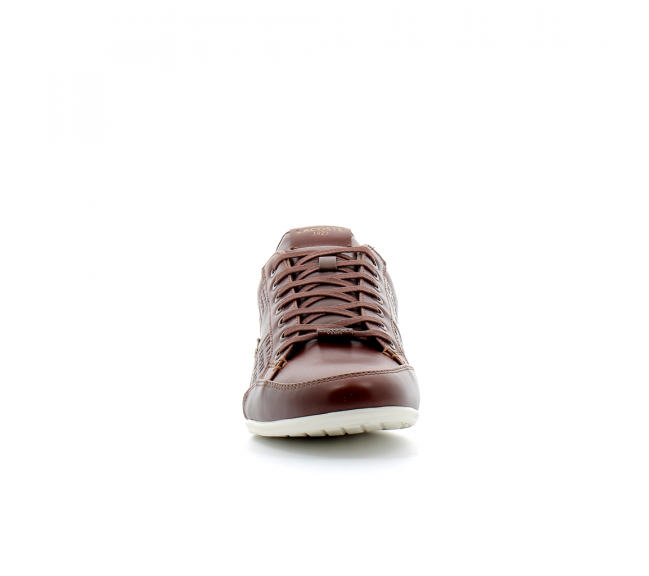 Dessus en cuir Semelle extérieure en caoutchouc Doublure en synthétique et en tissu Marquage crocodile doré effet ancien sur le quartier Marquage « Lacoste 1927 » faisant référence à l’héritage sportif 100 % cuir
