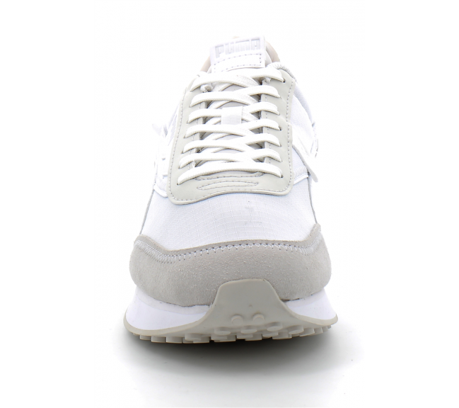 Créée en 1980, la Fast Rider a vu le jour au moment où le running commençait à passer de la piste à la rue. Nous avons transformé la Fast Rider en Future Rider grâce à la semelle extérieure fine Federbein et à notre confortable semelle intermédiaire en mousse Rider. Cette version Play On comporte une base en nylon avec empiècements en suède et matière synthétique. Base en nylon avec renforts en suède et matière synthétique Doublure en mesh Semelle intermédiaire en EVA Semelle extérieure en caoutchouc