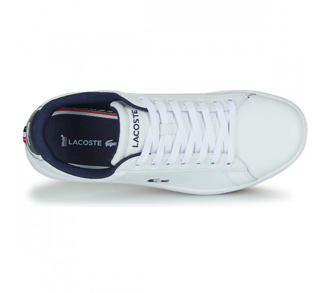 • Basket De Ville • Lacets plats • Inscription Lacoste sur la languette • Semelle gravée Lacoste certifiant l'authenticité • Crocodile Lacoste bleu blanc rouge sur le coté