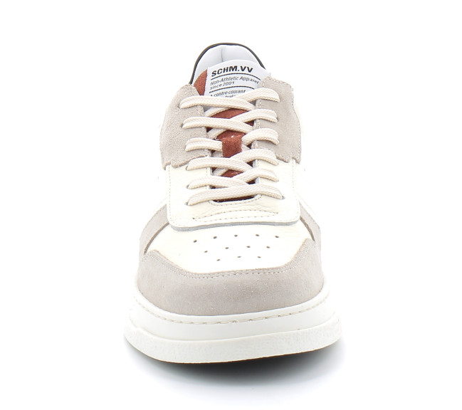 - Dessus en cuir grainé blanc - Languette en cuir velours grege avec étiquette logo cousue - Patch en cuir lisse noir avec logo Schmoove doré imprimé - Système de laçage avec œillets invisibles - Doublure en cuir et textile - Première amovible en cuir - Semelle cupsole en caoutchouc renforcée par une surpiqûre latérale - Fabriqué au Portugal