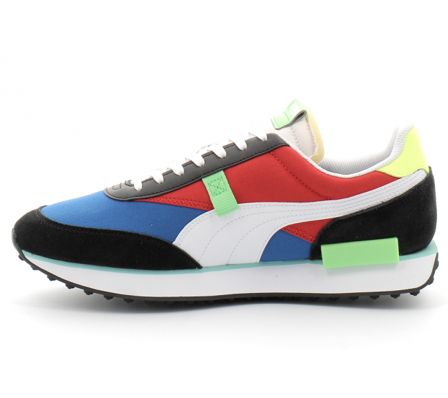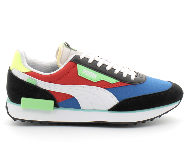 Créée en 1980, la Fast Rider a vu le jour au moment où le running commençait à passer de la piste à la rue. Nous avons transformé la Fast Rider en Future Rider grâce à la semelle extérieure fine Federbein et à notre confortable semelle intermédiaire en mousse Rider. Cette version Play On comporte une base en nylon avec empiècements en suède et matière synthétique.