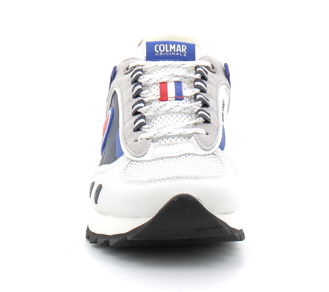 Tige, bout et languette en nylon texturé Bout renforcé, talon et garant en daim Contrefort en nylon texturé Première de propreté ergonomique amovible Semelle de marche crantée Logo Colmar appliqué sur le côté