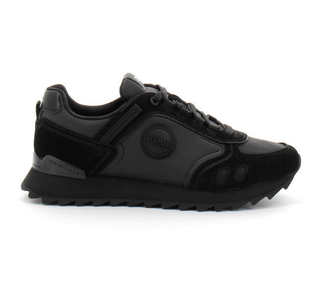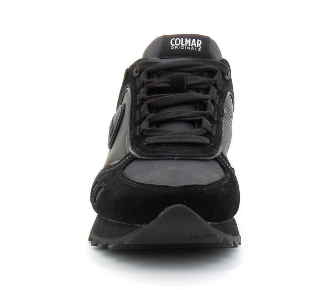 Tige en nylon texturé Empiècements en cuir suédé Languette en maille filet Bout en daim Partiellement collée à chaud Bandes en nylon avec coutures Première de propreté ergonomique amovible Semelle intermédiaire en E.V.A. Logo Colmar Originals appliqué sur le côté