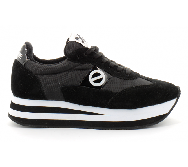 - Dessus en cuir suède et toile de nylon - Empiècements en vernis noir surmontés du logo sur les côtés et au talon - Doublure en coton éponge pour un confort maximal - Première de propreté amovible - Semelle rayée black & white de 4 cm - Semelle en EVA et caoutchouc souple et légère