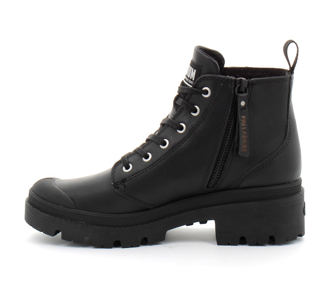 La Pallabase LTH de la célèbre marque Palladium est basée sur le modèle de la Pampa mais déclinée dans un modèle en cuir très confortable. Elle comporte des rivets métalliques pour le laçage, des lacets plats en coton, un patch en caoutchouc sur le côté avec le logo de la marque, une étiquette Palladium tissée sur la languette. Cette chaussure se porte montante. Elle présente une ligne épurée et féminine avec un talon haut et caractéristique de Palladium, notamment grâce à son iconique embout en caoutchouc. En cuir souple, elle complète parfaitement votre tenue urbaine.