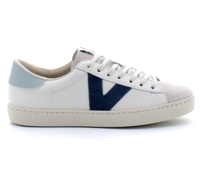 Baskets en cuir doux de qualité supérieure fabriquées en Espagne. Certifiées médaille d'argent selon la norme LWG (Leather Working Group), qui garantit un procédé de tannage responsable avec une gestion efficiente de l'eau, de l'énergie et des déchets. Touche de couleur sur le V de victoria sur le côté et pointe en cuir fendu. Semelles composées d'huiles végétales plutôt que minérales pour un impact moindre sur l'environnement.