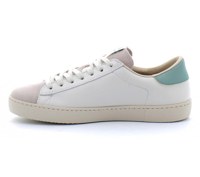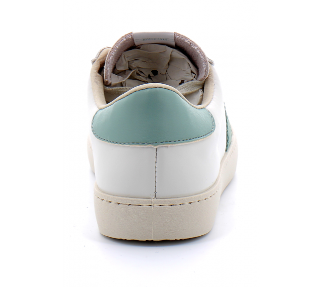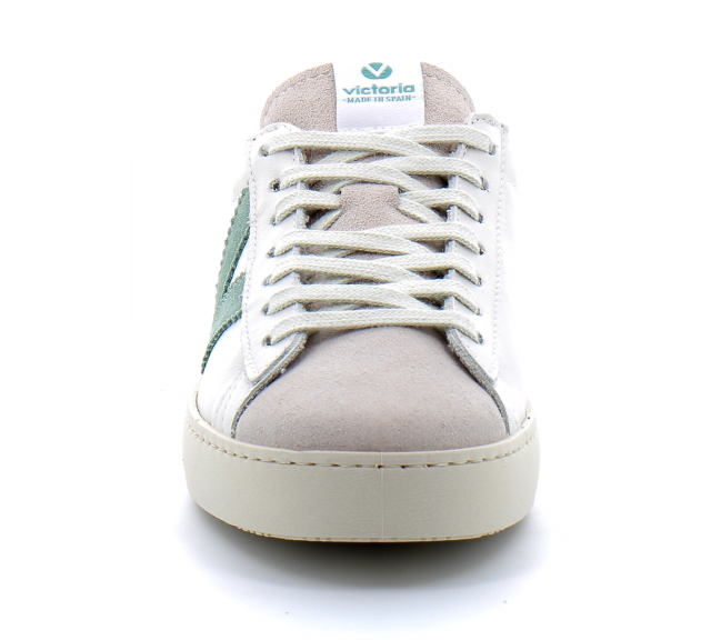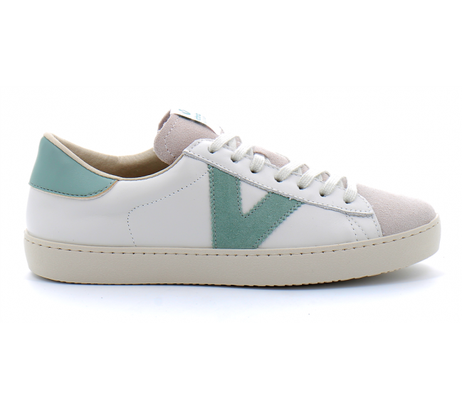 Baskets en cuir doux de qualité supérieure fabriquées en Espagne. Certifiées médaille d'argent selon la norme LWG (Leather Working Group), qui garantit un procédé de tannage responsable avec une gestion efficiente de l'eau, de l'énergie et des déchets. Touche de couleur sur le V de victoria sur le côté et pointe en cuir fendu. Semelles composées d'huiles végétales plutôt que minérales pour un impact moindre sur l'environnement.