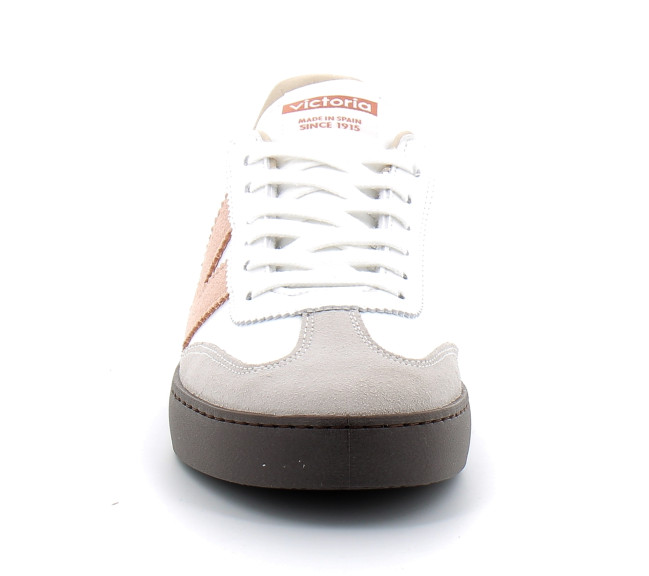 Nos baskets de sport blanches pour femme à coupe cycliste sont fabriquées en Espagne. Ces chaussures de sport sont fabriquées dans une matière effet cuir et avec une pièce en cuir fendu sur la pointe. Logo imprimé sur l'arrière et V coloré assorti sur le côté. Composée d'huiles végétales plutôt que minérales, la semelle, d'un joli ton marron chocolat, témoigne de notre engagement envers l'environnement. Ces baskets blanches en cuir pour femme sont pourvues d'une semelle intérieure plus ergonomique confectionnée à partir de matériaux recyclés, pour une expérience confortable et personnalisée.