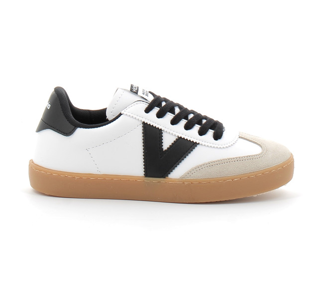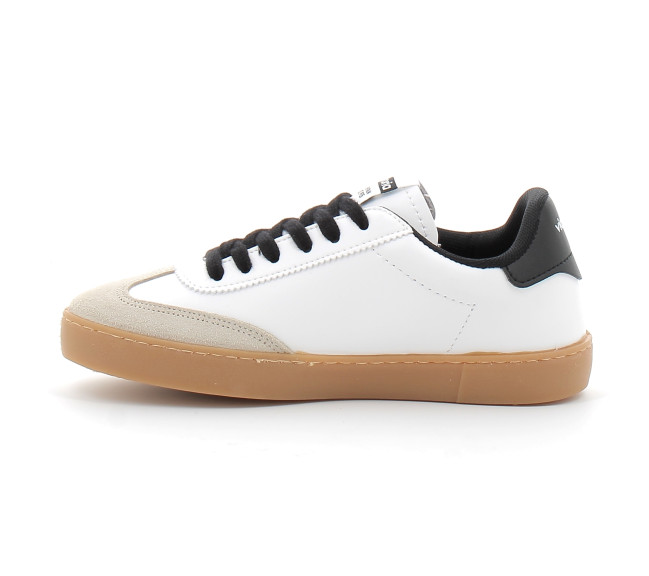 Baskets unisexes fabriquées en matière effet cuir et pièces en daim. Détails colorés contrastés sur le V latéral et la pièce arrière. Semelle translucide de couleur caramel pour une touche de style rétro. Elles sont pourvues également d'une semelle intérieure plus ergonomique fabriquée à partir de matériaux recyclés, offrant un confort supérieur à chaque pas.