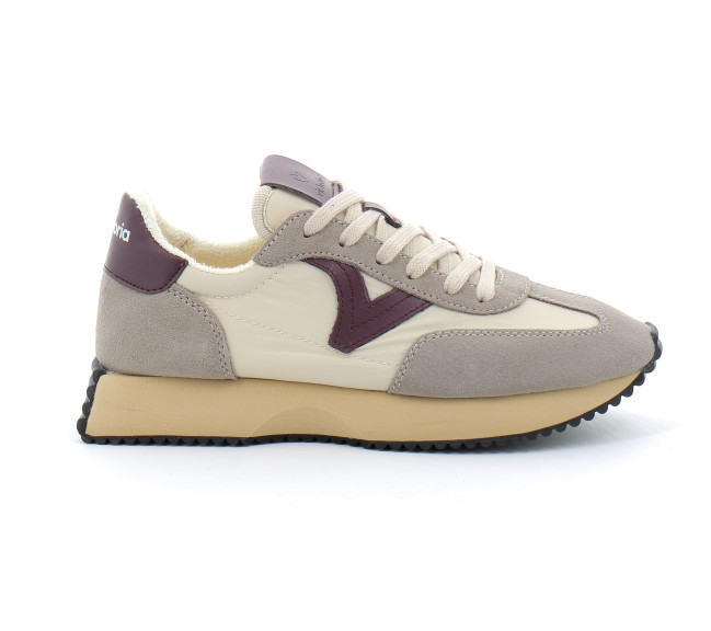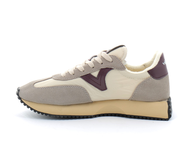 Sneakers fabriquées en nylon écru assorti à la semelle brune en EVA avec patin gommé cranté. Logo de victoria gravé sur l'arrière assorti au V rétro du côté. Elles disposent d'une semelle intérieure amovible. Elles se distinguent par leur confort et leur légèreté.