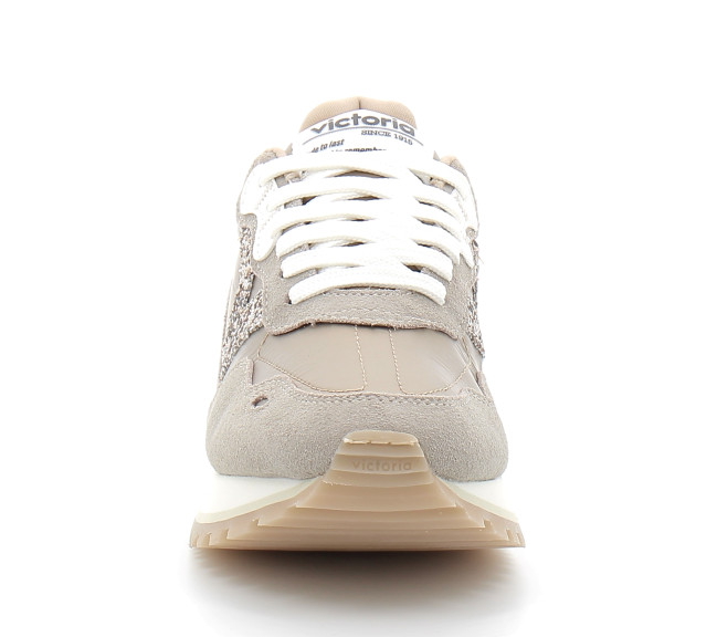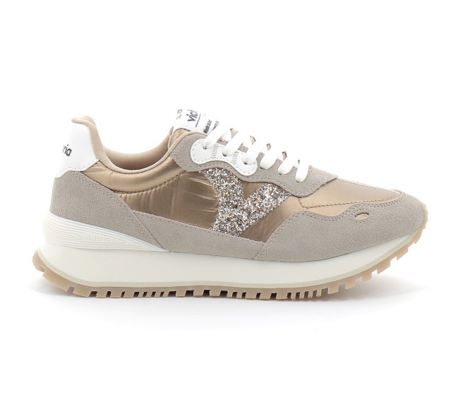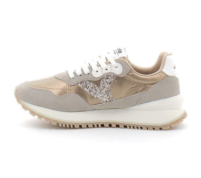 Les sneakers VIENTO pour femme se distinguent par leur design et leur confort. Avec une finition métallique, un effet matelassé et le logo en paillettes avec texture sur le côté, ces baskets ajoutent une touche de brillance et de sophistication. Fabriquées avec un mélange de nylon doux, de daim et d'effet cuir, elles combinent parfaitement style et fonctionnalité. Leur légèreté et leur caractère sportif sont renforcés par des détails tels que la semelle large et le stabilisateur de talon.