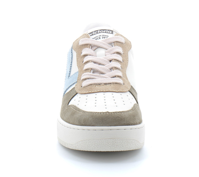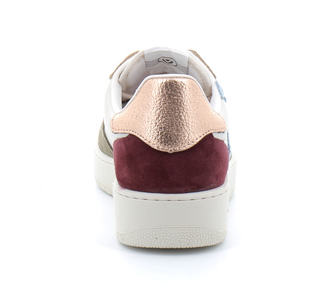 Baskets pour femme fabriquées en Espagne dans une matière effet cuir brun assorti à la semelle. Pièces en cuir fendu multicolore et détail métallisé en sur l'arrière. V rétro sur le côté et fermeture à lacets colorés. Empeigne perforée pour évacuer la transpiration. Semelle bicolore de 3 cm fabriquée à partir d'huiles végétales plutôt que minérales afin de réduire l'impact sur l'environnement.