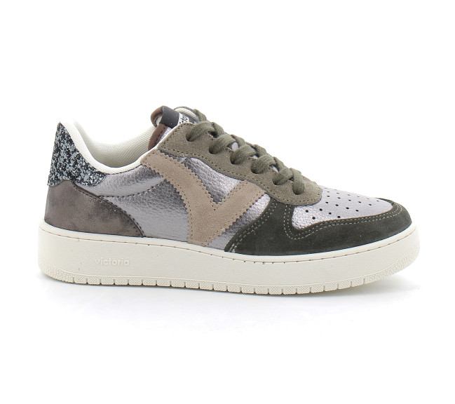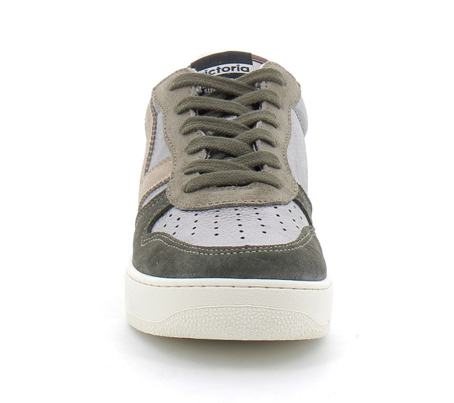 Baskets pour femme fabriquées en Espagne dans une matière effet cuir et logo en cuir fendu. Touche de couleur sur le V de victoria sur le côté et détail sur l'arrière contrastant. Fermeture à lacets et empeigne perforée pour évacuer la transpiration. Semelle de 3 cm fabriquée à partir d'huiles végétales plutôt que minérales afin de réduire l'impact sur l'environnement. Elles se distinguent par leur légèreté et leur confort.