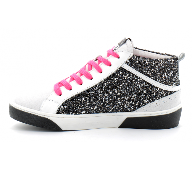 Basket mode montante à lacet pour femme ALPHA noir-rose 4831