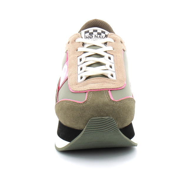 - Dessus cuir vachette velours et textile - Etiquette logo NO NAME brodé sur la languette - Logo imprimés sur le côté et au talon - Doublure en textile - Première amovible en textile - Semelle de 5 cm ultra légère en caoutchouc - Semelle soudée