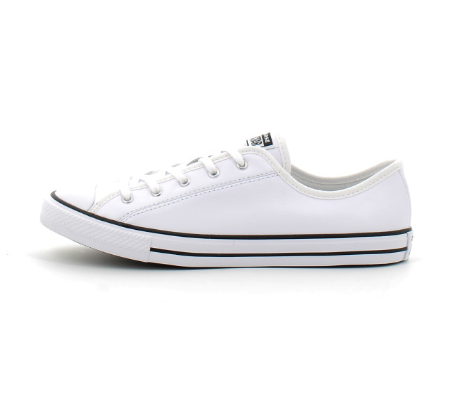 Avec la Dainty Chuck Taylor All Star, la légèreté revêt un tout autre sens pour vos pieds. Elle reprend le style décontracté à succès, mais avec de nouvelles couleurs et des proportions réduites pour un look plus délicat. Caractéristiques du produit Sneaker basse en cuir. Semelle intérieure en EVA pour un meilleur amorti. Coupe ultra-basse et fine. Pointe, lacets et étiquette sur la languette plus discrets. Logo tissé sur la languette et plaque standard.
