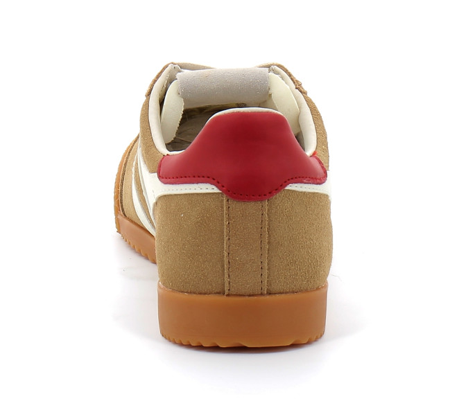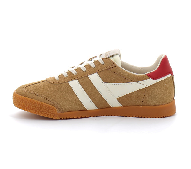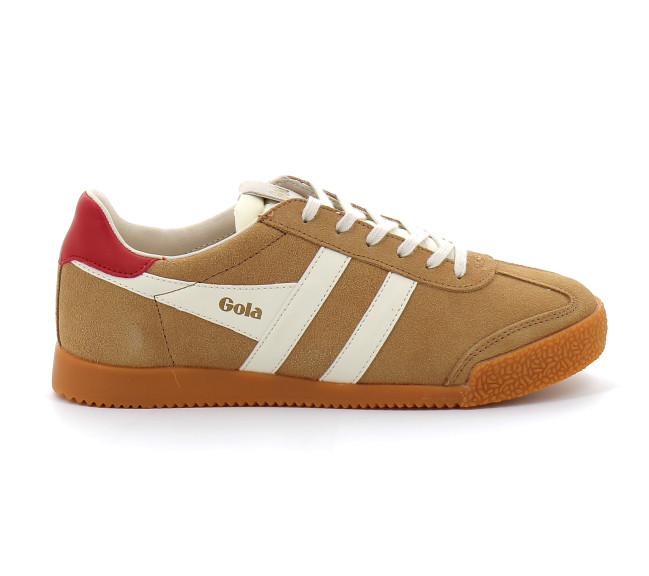 En matière de sports traditionnels, Gola a une histoire à raconter et les racines d'Elan en tant que chaussure d'entraînement polyvalente peuvent authentiquement le dire. Une semelle en gomme à l'ancienne, dans le ton vintage parfait, rappelle les jours dans le gymnase de l'école, tandis que des combinaisons de couleurs frappantes telles que ce caramel, ce blanc cassé et ce rouge foncé, donnent à cette basket un look résolument moderne. Vous ne vous trompez pas si vous pouvez voir la ressemblance avec le modèle phare Harrier de Gola, Elan est presque un jumeau mais possède un panneau de languette de talon supplémentaire pour donner une touche de couleur supplémentaire. Vendue aussi vite que nous les avons reçues, c'est la basket Gola la plus en vogue de la saison.