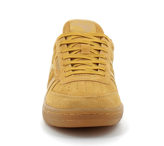 Cette édition entièrement en daim et couleur unie du style Gola Hawk le plus vendu donne une touche de couleur digne de la saison à n'importe quelle collection de baskets. Hawk Suede '86 pour femmes intègre des panneaux superposés sur une tige classique inspirée des sports de terrain, pour donner un look contemporain sans effort. Présentées ici dans des tons moutarde adaptés à la saison et parfaitement coordonnées avec une semelle extérieure entièrement en gomme pour une ambiance old school incontournable. À porter avec un jean ample ou un pantalon large pour un look décontracté.