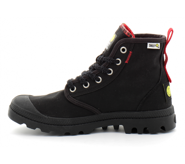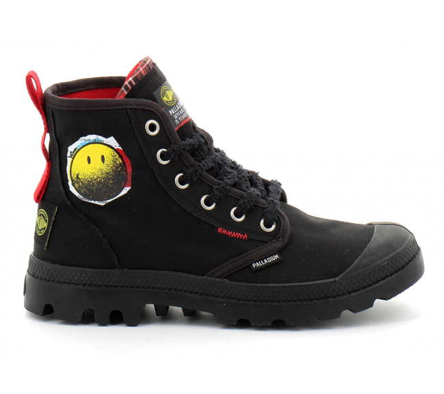 Défroncez les sourcils ! Le Smiley fait son entrée dans le nouveau millénaire avec ce modèle ultra-moderne. Avec sa tige en textile synthétique qui fait écho à l’ère du numérique et le motif Smiley qui semble se déplacer à la vitesse de la lumière, cette iconique Pampa X Smile 2000 dipose en plus de lacets multicolores pour un look futuriste. Issu de la collaboration entre Smiley et Palladium afin de célébrer leur anniversaire respectifs, ce modèle apporte une touche décalée à notre héritage de boots robustes d'exploration.
