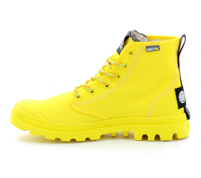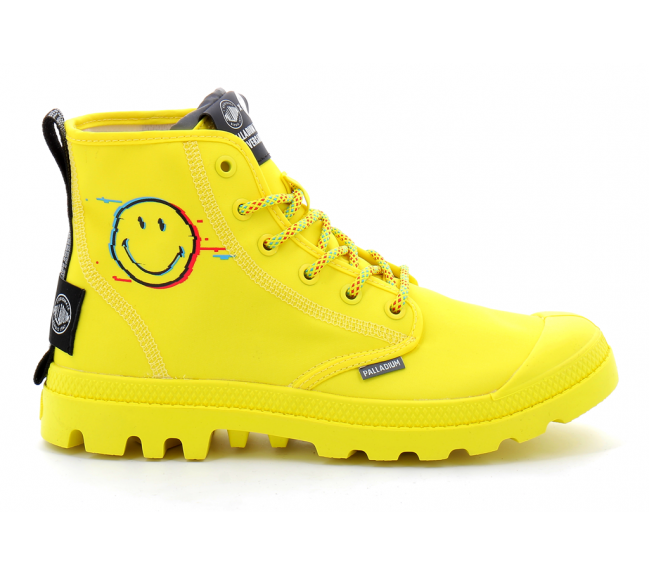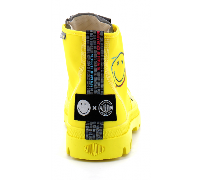 Défroncez les sourcils ! Le Smiley fait son entrée dans le nouveau millénaire avec ce modèle ultra-moderne. Avec sa tige en textile synthétique qui fait écho à l’ère du numérique et le motif Smiley qui semble se déplacer à la vitesse de la lumière, cette iconique Pampa X Smile 2000 dipose en plus de lacets multicolores pour un look futuriste. Issu de la collaboration entre Smiley et Palladium afin de célébrer leur anniversaire respectifs, ce modèle apporte une touche décalée à notre héritage de boots robustes d'exploration.