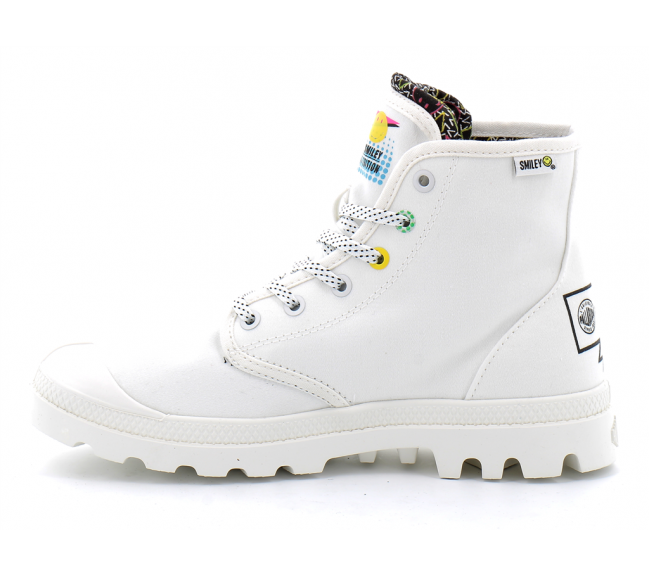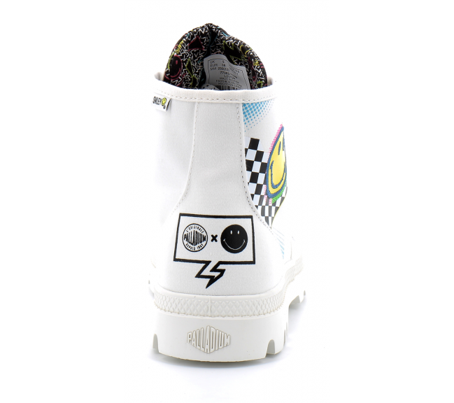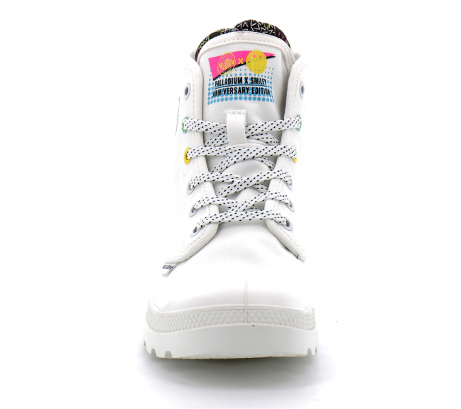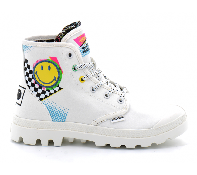 Défroncez les sourcils ! Le Smiley fait son entrée dans le nouveau millénaire avec ce modèle ultra-moderne. Avec sa tige en textile synthétique qui fait écho à l’ère du numérique et le motif Smiley qui semble se déplacer à la vitesse de la lumière, cette iconique Pampa X Smile 2000 dipose en plus de lacets multicolores pour un look futuriste. Issu de la collaboration entre Smiley et Palladium afin de célébrer leur anniversaire respectifs, ce modèle apporte une touche décalée à notre héritage de boots robustes d'exploration.
