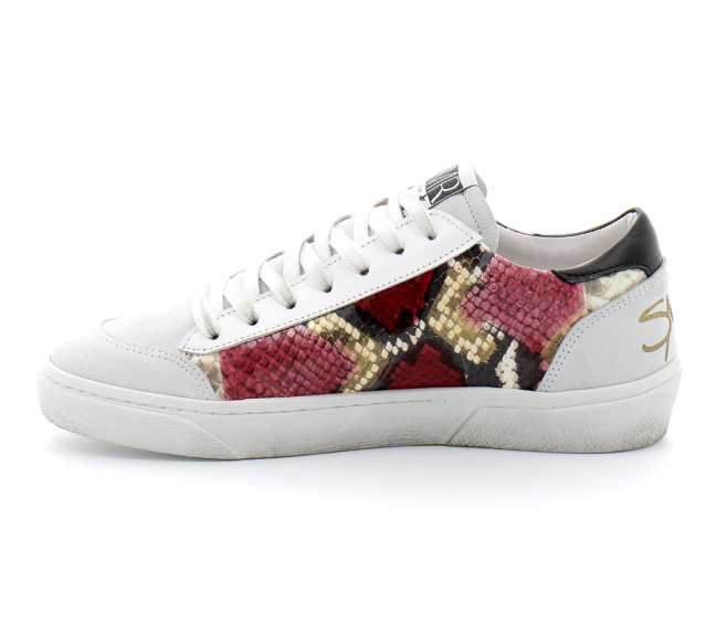 Basket mode basse à lacet pour femme ELISE blanc-bordeaux 4537.