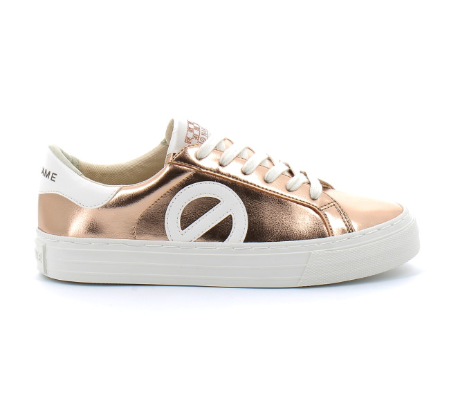NO NAME illumine le vestiaire avec cette STRIKE SIDE en version cuivre métallisé. Un patch blanc au talon et des logos XXL sur les côtés jouent les contrastes pour mettre en valeur son look audacieux. Cette sneaker repose sur une semelle plateforme signature NO NAME. C’est le modèle parfait pour ajouter une touche de glam à tous tes looks chics ou décontractés.