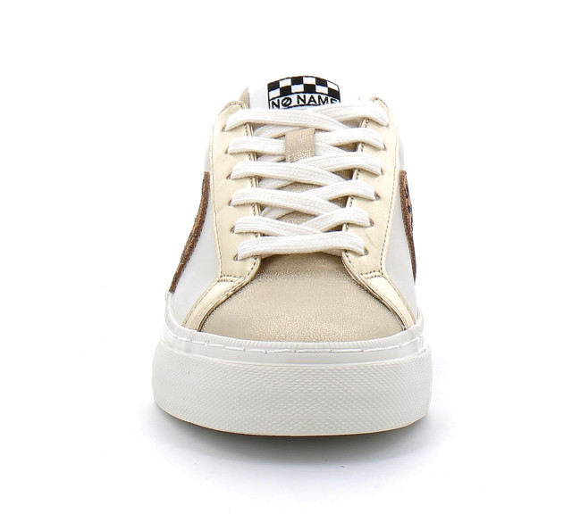 NO NAME illumine le vestiaire avec cette STRIKE SIDE en version cuivre métallisé. Un patch blanc au talon et des logos XXL sur les côtés jouent les contrastes pour mettre en valeur son look audacieux. Cette sneaker repose sur une semelle plateforme signature NO NAME. C’est le modèle parfait pour ajouter une touche de glam à tous tes looks chics ou décontractés.