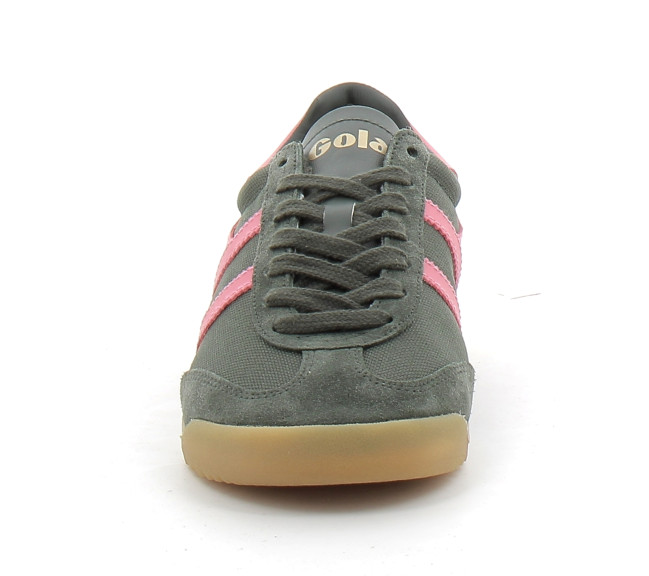 Sa tige en nylon épais jaune soleil est sublimée par des empiècements en daim ton sur ton sur la pointe, le talon et le laçage, pour un rendu à la fois texturé et élégant. La bande latérale Gola blanc cassé à bords dentelés apporte un contraste iconique et reconnaissable.