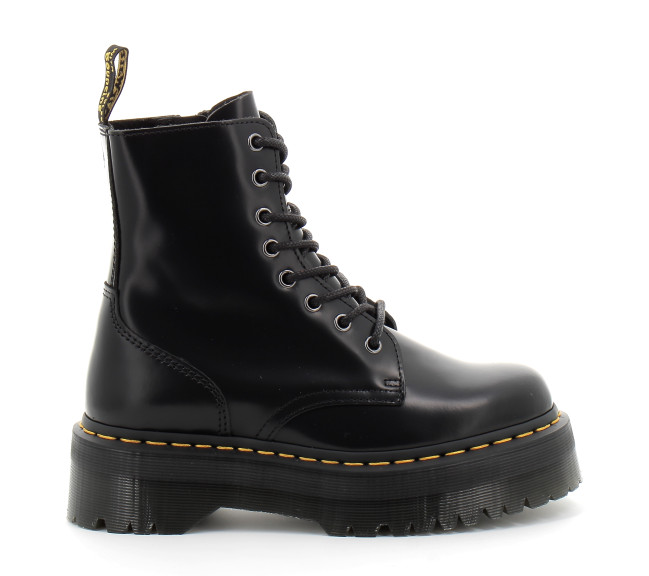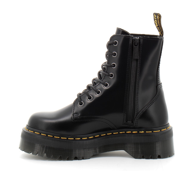 Envie d'un modèle original ? Ne cherchez plus. Nos boots Jadon repensent six décennies d'attitude Dr. Martens en une paire plateforme spectaculaire. Inspirées de nos boots Original à 8 œillets, les boots Jadon sont fabriquées en cuir Polished Smooth que vous pouvez cirer ou laisser tel quel. L'impressionnante semelle Quad est soulignée de nos rainures et de nos surpiqûres jaunes signature, et le talon se pare de notre boucle d'enfilage jaune et noire. La fermeture zippée intérieure permet de les enfiler et retirer facilement. Faite pour donner de l'assurance, notre impressionnante semelle Quad est destinée aux personnes qui n'ont pas peur d'imposer leur style. Elle mesure environ 5,08 cm.