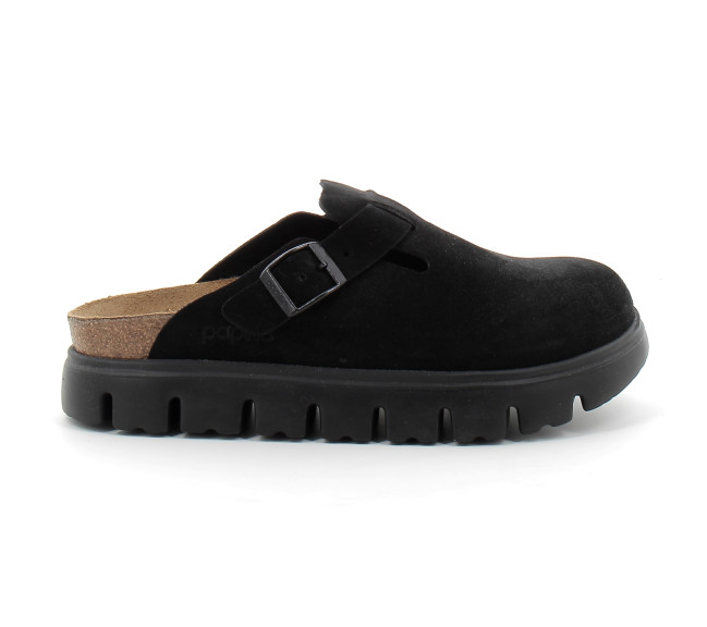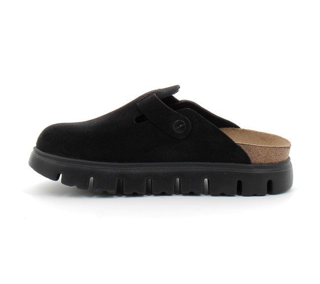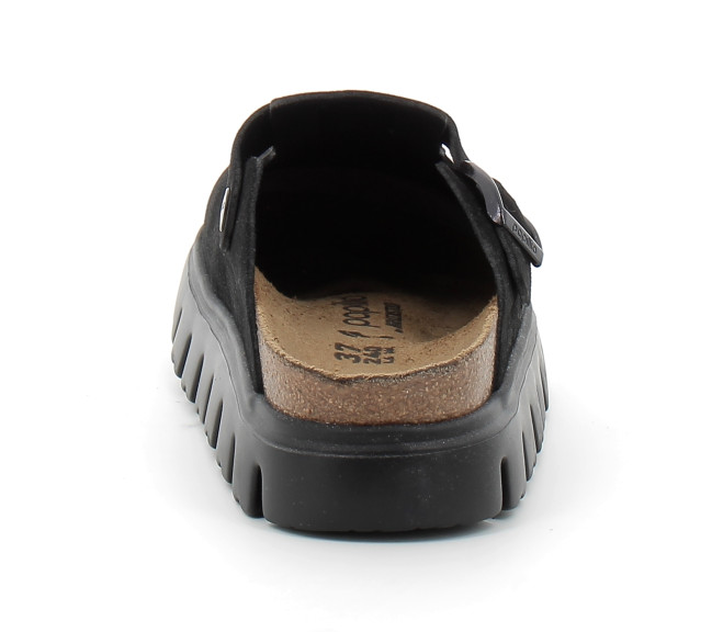Grand classique BIRKENSTOCK, le sabot Boston se porte en toute saison. Papillio pare ici le sabot d'une semelle compensée tendance aux lignes très profilées. Le bout biseauté assure un confort maximal durant la marche. Sa tige a été confectionnée dans un cuir velours particulièrement doux qui drape le pied comme une seconde peau.