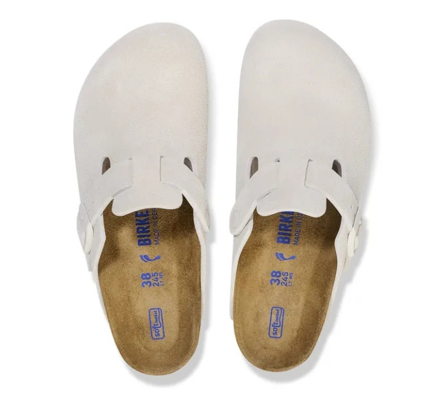 Le sabot Boston, un classique parmi les modèles de BIRKENSTOCK, se présente ici dans un aspect moderne et la fois très naturel. C'est ce dont s'assure le dessus en cuir velours de grande qualité et particulièrement souple, au fini ciré tendance.