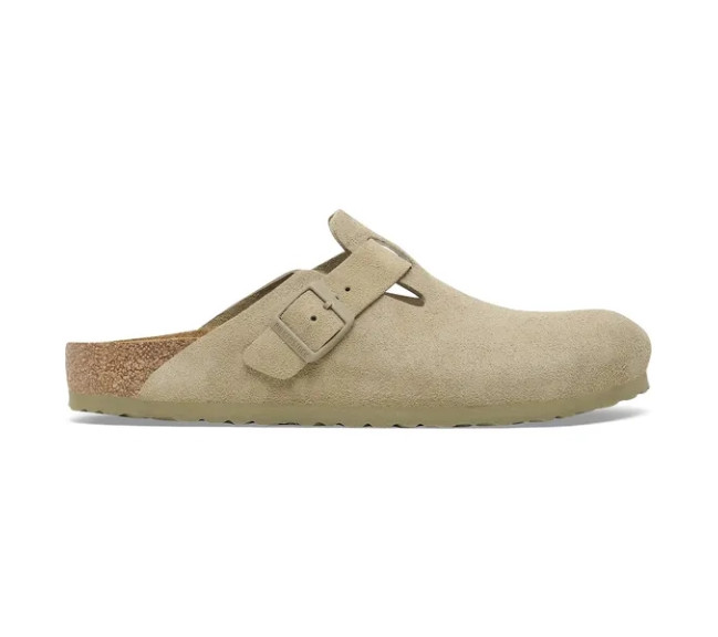 Le sabot Boston, un classique parmi les modèles de BIRKENSTOCK, se présente ici dans un aspect moderne et la fois très naturel. C'est ce dont s'assure le dessus en cuir velours de grande qualité et particulièrement souple, au fini ciré tendance.