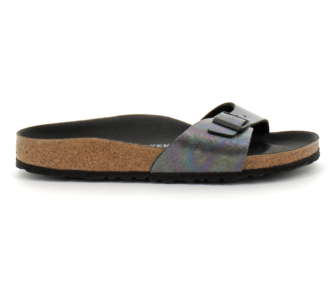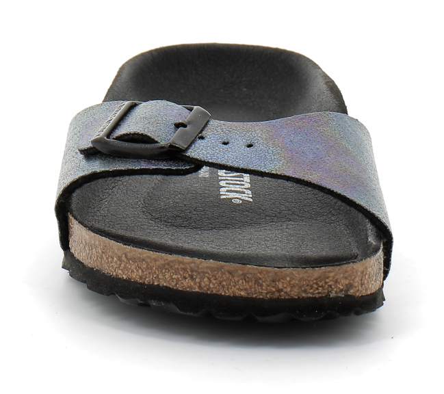 Sandales Birkenstock à bout rond, retenues par une bride ajustable au bout du pied, montées sur une semelle de gomme. On retrouve chez les mythiques Madrid la célèbre semelle anatomique en liège et en latex par Birkenstock, dont on ne présente plus les qualités de confort et de stabilité légendaires. Cette jolie version très sobre, dotée d'un bout de pied asymétrique rigolo, s'habillent d'une myriade de nouvelles couleurs mates, irisées, glossy... Un must pour l'été ! Largeur : Etroite