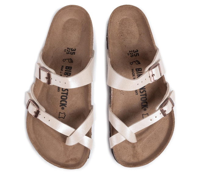 L'entre-doigts Mayari de BIRKENSTOCK est une sandale de conception moderne avec une bride d'orteil. Le mariage réussi entre design et confort accompagne de manière élégante et confortable les femmes et hommes soucieux de la mode dans leur quotidien. Le Dessus est en Birko-Flor®, une matière synthétique hypoallergénique et résistante, dans un style nubuck : il en résulte une texture et une couleur très similaires à celles du cuir véritable. Largeur : Normale