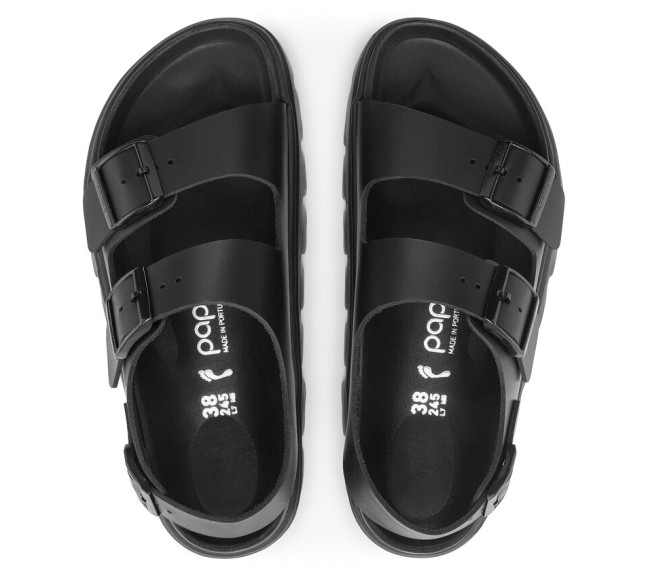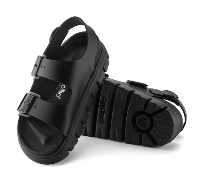Grand classique BIRKENSTOCK, la Milano comble hommes et femmes depuis des décennies. Papillio pare ici la sandale à double brides d'une semelle compensée tendance aux lignes très profilées. Le bout biseauté, à l'avant comme à l'arrière, assure un excellent confort durant la marche. Le lit de pied exquisit est entièrement revêtu d'une semelle de propreté en cuir Piumato doux, qui garantit un confort sans pareil. Sa tige se compose de cuir naturel doux haut de gamme. Largeur : Etroite