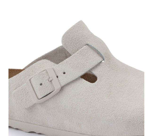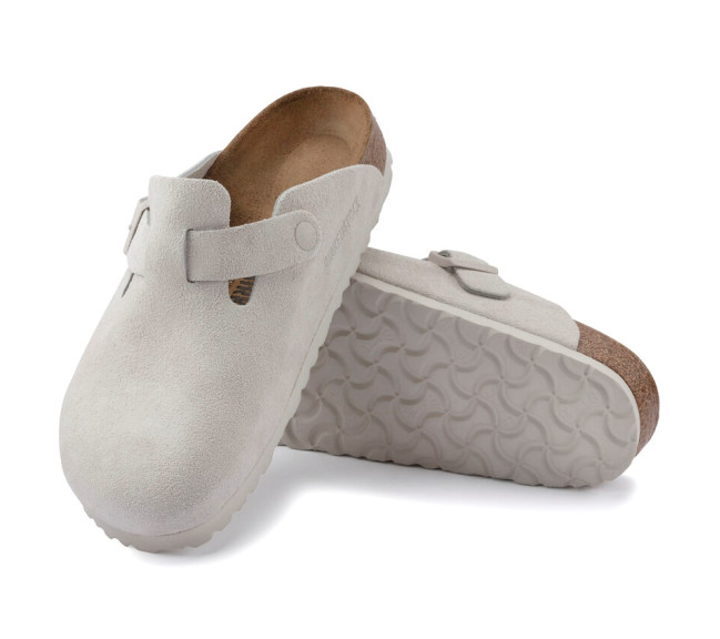 Le sabot Boston, un classique parmi les modèles de BIRKENSTOCK, se présente ici dans un aspect moderne et la fois très naturel. C'est ce dont s'assure le dessus en cuir velours de grande qualité et particulièrement souple, au fini ciré tendance. Largeur : Etroite