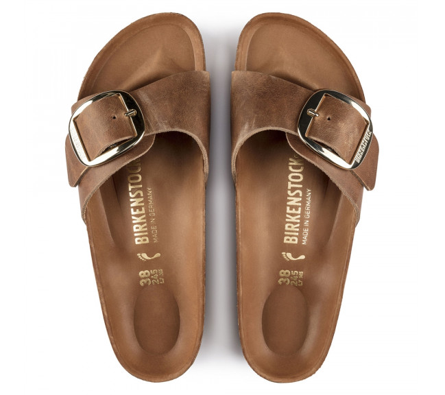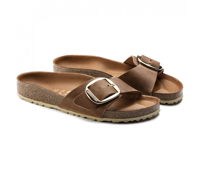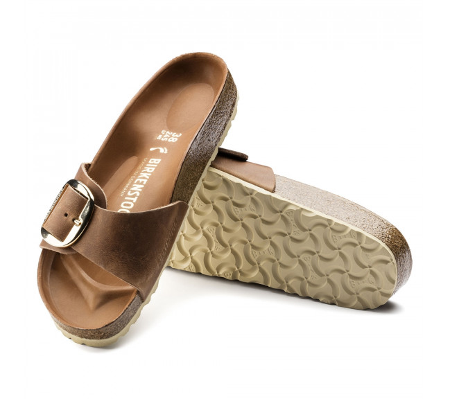Sandales Birkenstock à bout rond, retenues par une bride ajustable au bout du pied, montées sur une semelle de gomme. On retrouve chez les mythiques Madrid la célèbre semelle anatomique en liège et en latex par Birkenstock, dont on ne présente plus les qualités de confort et de stabilité légendaires. Cette jolie version très sobre, dotée d'un bout de pied asymétrique rigolo, s'habillent d'une myriade de nouvelles couleurs mates, irisées, glossy... Un must pour l'été !