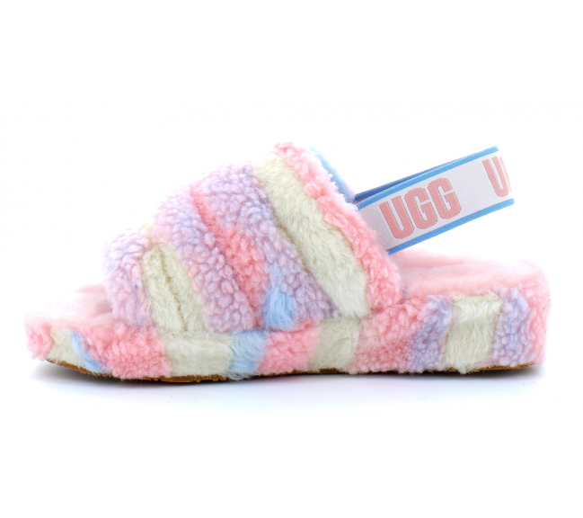 Peau de mouton Bride élastique avec graphisme UGG Doublure en peau de mouton Semelle intérieure en peau de mouton Semelle extérieure en caoutchouc Hauteur de la semelle compensée : 3,8 cm Par UGG® RN# 88276 Importé Ce modèle contient de la fourrure de mouton ou d’agneau véritable. La fourrure provient d’Australie, d’Irlande, du Royaume-Uni ou des États-Unis. Elle a été teinte et traitée artificiellement. Fabriqué au Vietnam.