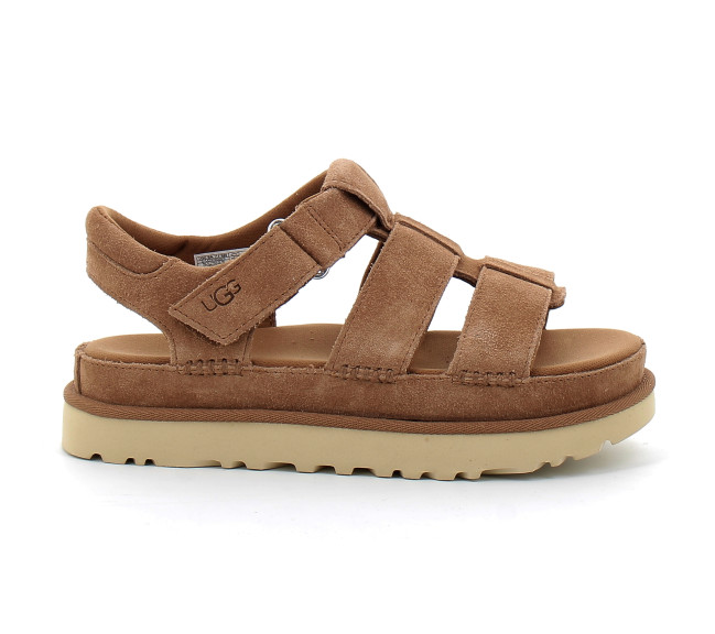 La star, c’est vous. Voici la Goldenstar. Idéale pour faire sensation lors des beaux jours. Cette sandale s’inspire de la botte UGG Classic. Réalisée en daim velouté, elle repose sur une assise plantaire en mousse offrant amorti et maintien, ainsi que sur une semelle extérieure légère pensée pour le quotidien. Une lanière réglable permet de l’ajuster à la perfection pour être à l’aise en déplacement. Foncez, rejoignez le fan club Goldenstar. Ce produit a été fabriqué dans une usine qui soutient les femmes intervenant dans notre chaîne d’approvisionnement par le biais de HERproject. Cette initiative collaborative crée des partenariats avec des marques comme la nôtre pour valoriser et former les femmes sur le lieu de travail.