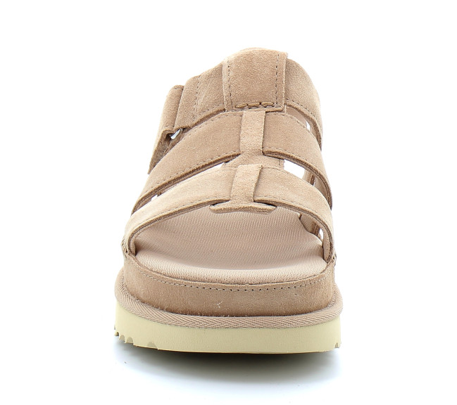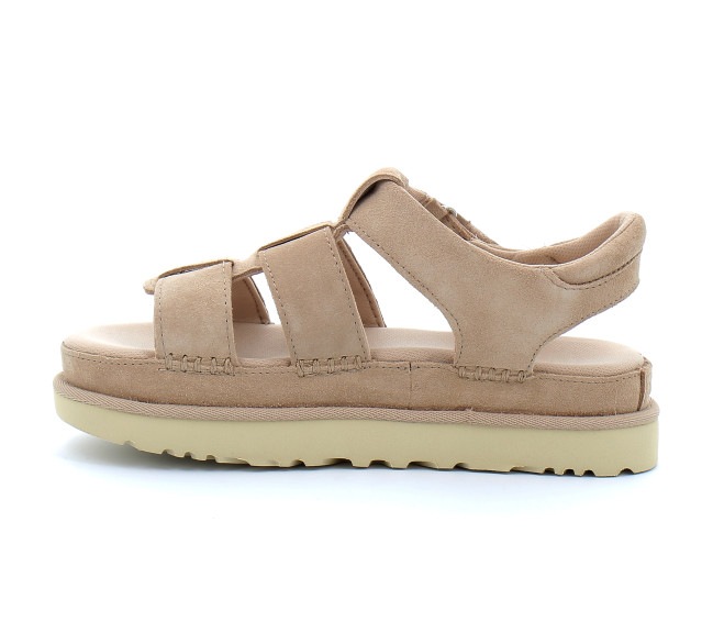 La star, c’est vous. Voici la Goldenstar. Idéale pour faire sensation lors des beaux jours. Cette sandale s’inspire de la botte UGG Classic. Réalisée en daim velouté, elle repose sur une assise plantaire en mousse offrant amorti et maintien, ainsi que sur une semelle extérieure légère pensée pour le quotidien. Une lanière réglable permet de l’ajuster à la perfection pour être à l’aise en déplacement. Foncez, rejoignez le fan club Goldenstar. Ce produit a été fabriqué dans une usine qui soutient les femmes intervenant dans notre chaîne d’approvisionnement par le biais de HERproject. Cette initiative collaborative crée des partenariats avec des marques comme la nôtre pour valoriser et former les femmes sur le lieu de travail.