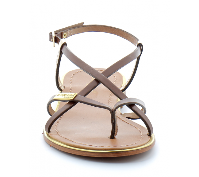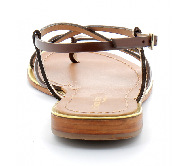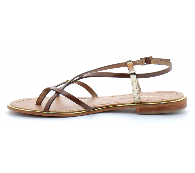 Sandales pour femme à entre-doigts en cuir Monaco tan-or 02142
